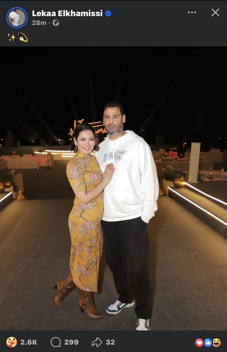 نشرت النجمة لقاء الخميسي أول صورة رومانسية تجمعها بزوجها محمد عبد المنصف بعد أزمة زواجه الأخيرة، لتعلن بذلك الصلح بينهما رسميًا، وذلك عبر حسابها الشخصي بموقع التواصل الإجتماعي الأشهر “فيسبوك”.