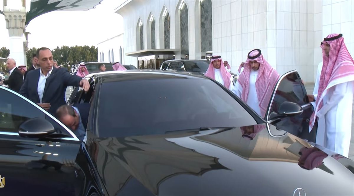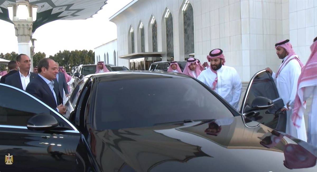 وقاد الأمير محمد بن سلمان السيارة بالرئيس السيسي انطلاقا من المطار، وفي لقطة جذبت الانتباه وتدل على التزام الرئيس بالبروتوكول انتظر حتى استقل بن سلمان السيارة باعتباره المضيف، فيما وضع الحارس الشخصي يديه تحت سقف باب السيارة حتى يحمي رأس الرئيس من الاصطدام.