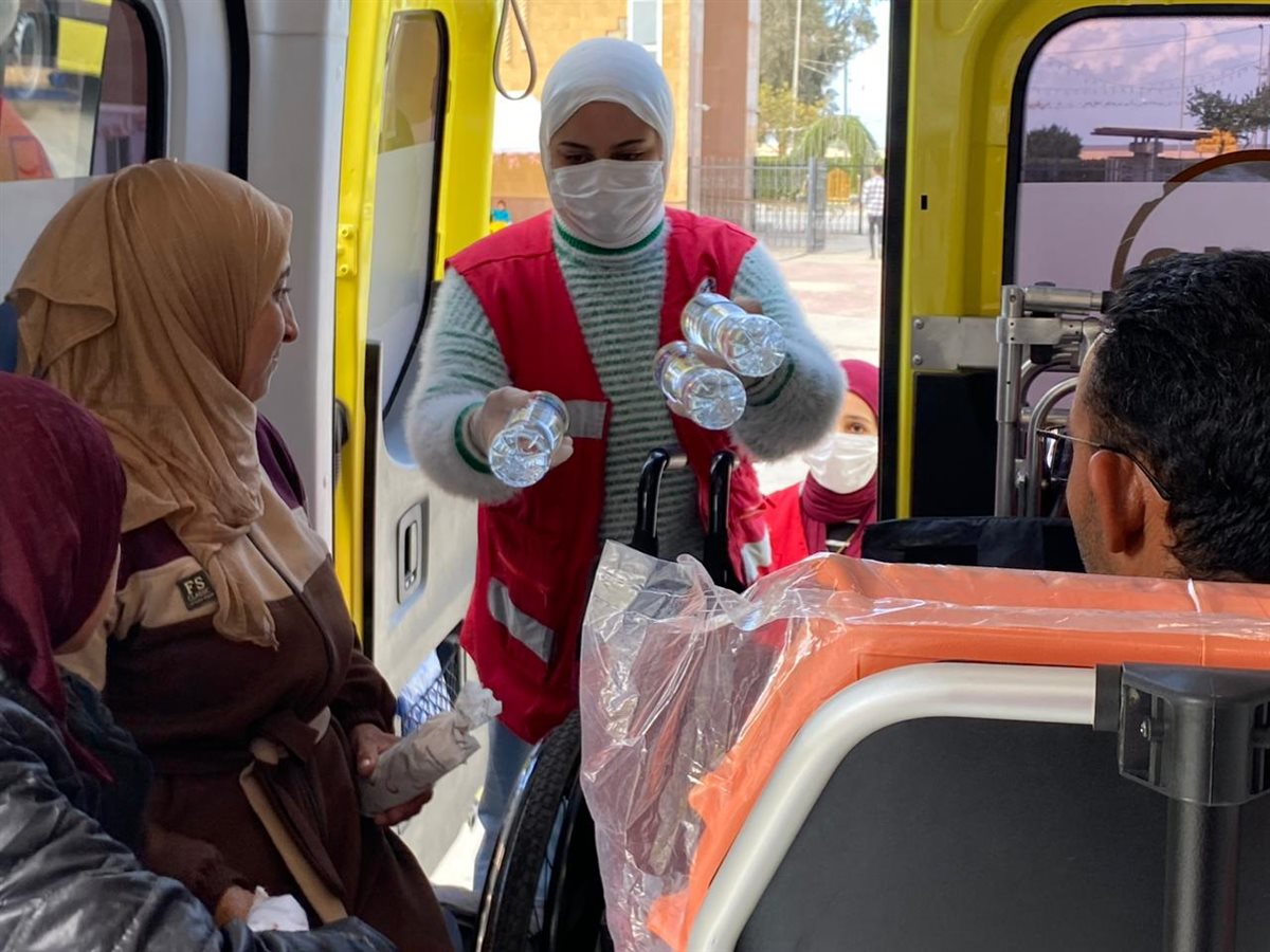 وفي سياق متصل، يواصل الهلال الأحمر المصري على معبر رفح من الجانب المصري، جهوده الإنسانية في استقبال وتوديع الدفعة الـ 18 من الجرحى والمرضى والمصابين الفلسطينيين الوافدين والمغادرين، ومرافقتهم في إنهاء إجراءات العبور.