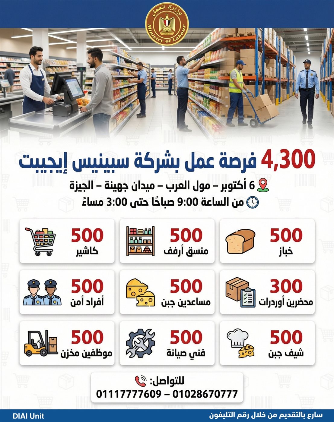 4300 فرصة عمل جديدة يإحدى السلاسل التجارية في 6 أكتوبر