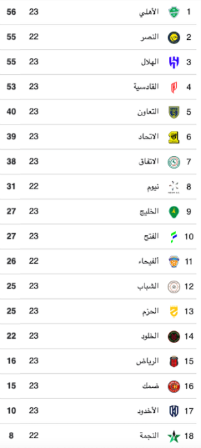 وتستعرض بوابة الوفد لقرائها جدول ترتيب دورى روشن السعودى: