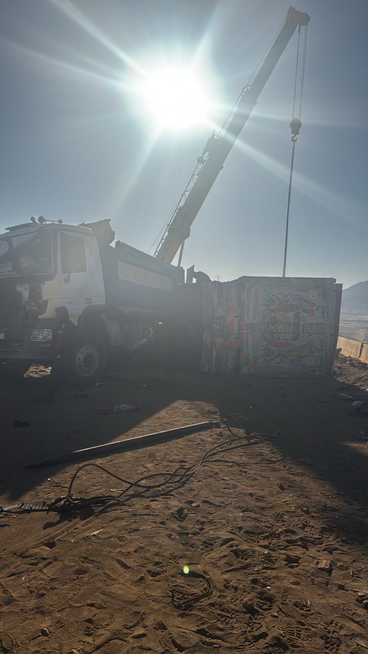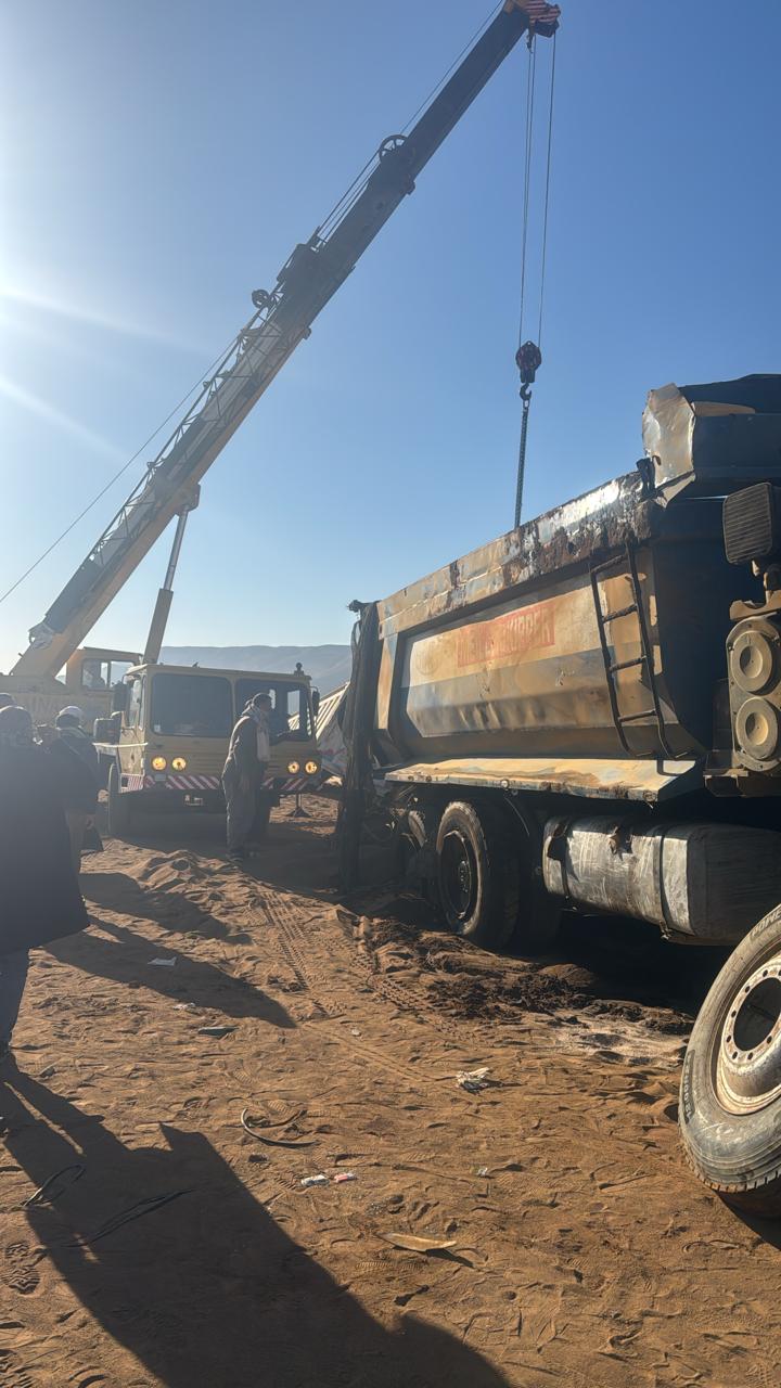 حبس المسافرون على الطريق الصحراوي الشرقي بمركز أخميم أنفاسهم، إثر وقوع زلزال مروري مروع ناتج عن تصادم عنيف بين "وحوش الأسفلت"، حيث تحولت المنطقة إلى ساحة من الحطام عقب انقلاب سيارة نقل بمقطورة "تريلا" بعرض الطريق.