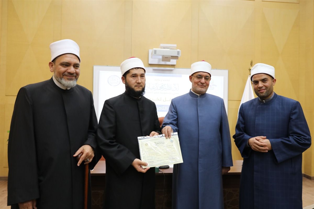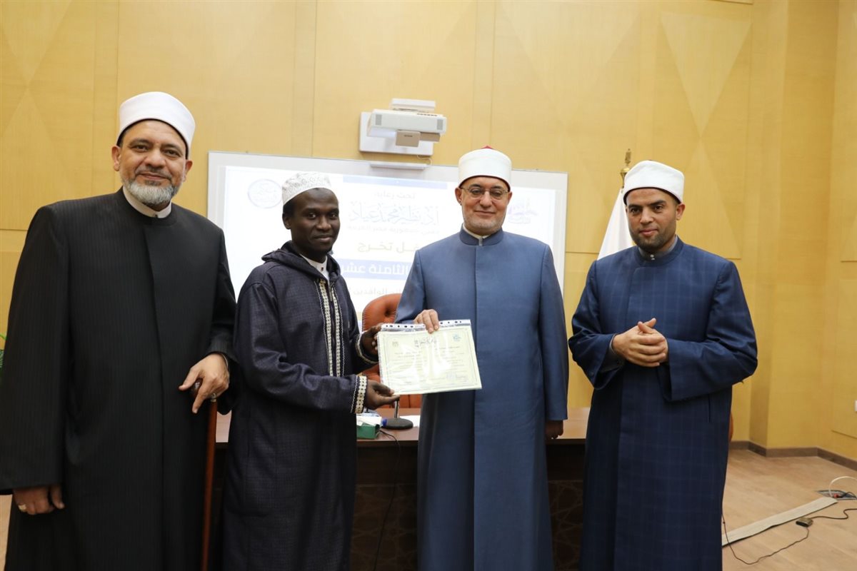 وفي ختام فعاليات البرنامج كرَّم فضيلةُ مفتي الجمهورية الخريجين وسلَّمهم شهادات إتمام الدراسة، مؤكدًا أن إعداد الكفاءات الإفتائية مسؤولية ممتدة تتطلب الجمع بين رسوخ العلم ودقة المنهج وحسن إدراك المتغيرات المعاصرة، ومشددًا على أهمية استمرار التواصل العلمي بين الدار وخريجيها، بما يعزِّز وَحدة المرجعية ويخدم استقرار المجتمعات.