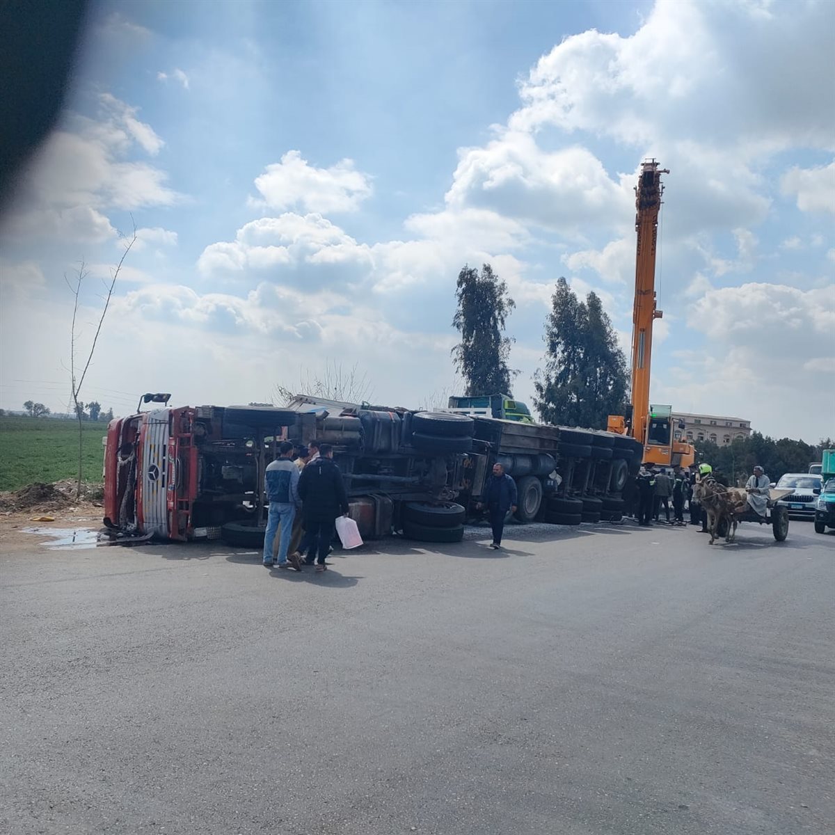 انقلاب شاحنة أسمدة يشل طريق أجا المنصورة واستنفار عاجل بالدقهلية