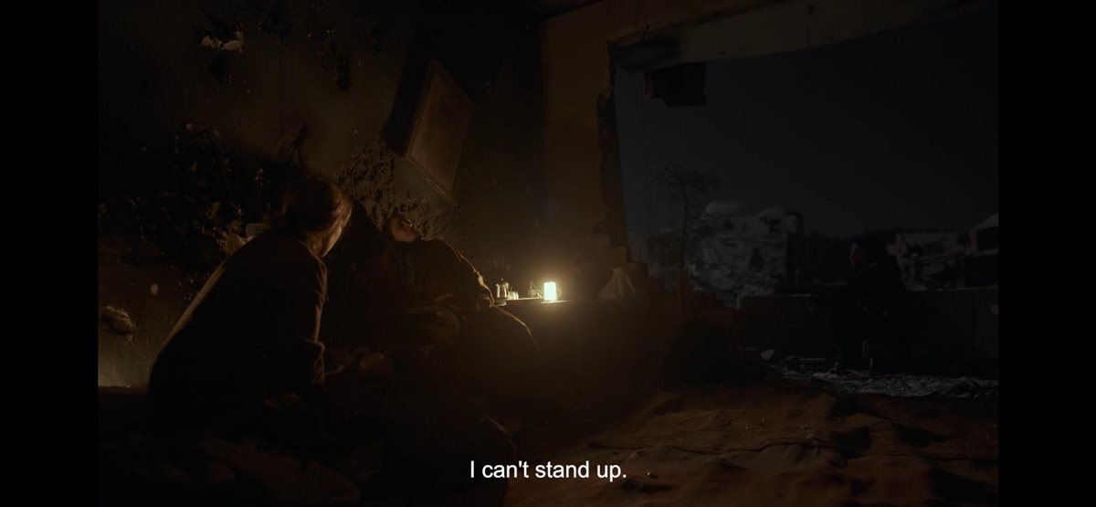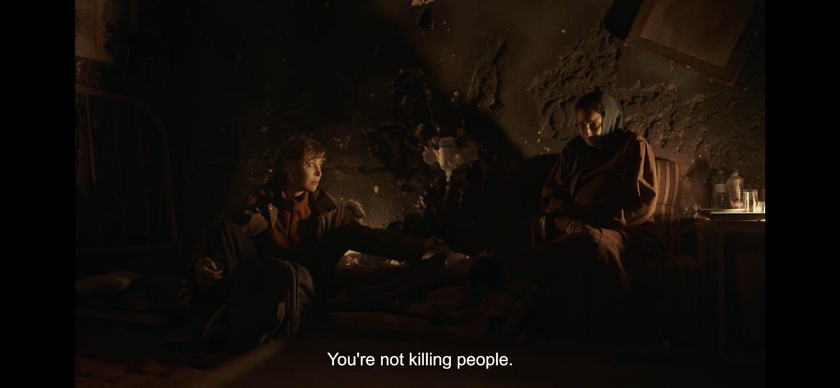 وتؤكد فدوى للدكتورة سلمى أنها كانت تريد أن تنجب بنت لكي تسميها سلمى على اسمها، وتحاول منة شلبي أن تتطمئنها بعد قدوم دبابات إسرائيلية بالقرب.