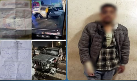 أمكن ضبط السيارة الظاهرة بمقطع الفيديو وقائدها، وأفادت أهليته بأنه يعانى من مرض نفسى منذ عدة سنوات ويتم علاجه لدى عدد من الأطباء النفسيين وقدموا الأوراق والشهادات الطبية التى تفيد ذلك، وباستكمال التحرى تبين أن المذكور تردد على أحد محلات كماليات السيارات بذات المنطقة وطلب من كريمة مالك المحل طباعة الملصق المشار إليه فقامت المذكورة بطباعة نسختين وتسليمها له خوفًا منه لكونه معروفًا بمحيط المنطقة محل سكنه بعدم إتزانه النفسى، تم اتخاذ الإجراءات القانونية.. وتولت النيابة العامة التحقيق.