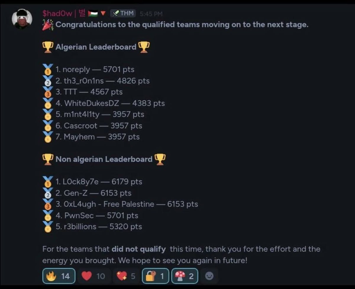 وجاء حصول جامعة المنصورة على المركز الأول إفريقيًا من خلال فريق L0ck8y7e، الذي ضم الطلاب زياد محمد السعيد الرنقراني ببرنامج هندسة الاتصالات والحاسبات (CCE)، وكريم عصام عبدالبديع الشوره، ومحمود أسامة علي، ومحمد وجدي خلف بقسم هندسة الحاسبات ونظم التحكم، فيما حقق المركز الثاني على مستوى القارة الإفريقية فريق Gen-Z، ومثّله الطالب يوسف أيمن ماهر ببرنامج هندسة الذكاء الاصطناعي (AI)، وذلك عقب منافسات قوية بين نخبة من الفرق المتخصصة في الأمن السيبراني بمختلف الدول الإفريقية.