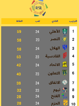 ترتيب دوري روشن السعودي الأهلى في الصدارة