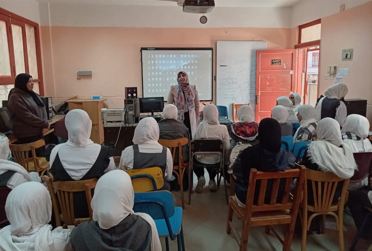 واستعانت الدكتورة خلال اللقاء بشاشة عرض داخل معمل الكمبيوتر بالمدرسة، لعرض نماذج تطبيقية توضح للطالبات أبرز استخدامات الذكاء الاصطناعي في المجالات الطبية المختلفة، وسط تفاعل ملحوظ من الحضور.