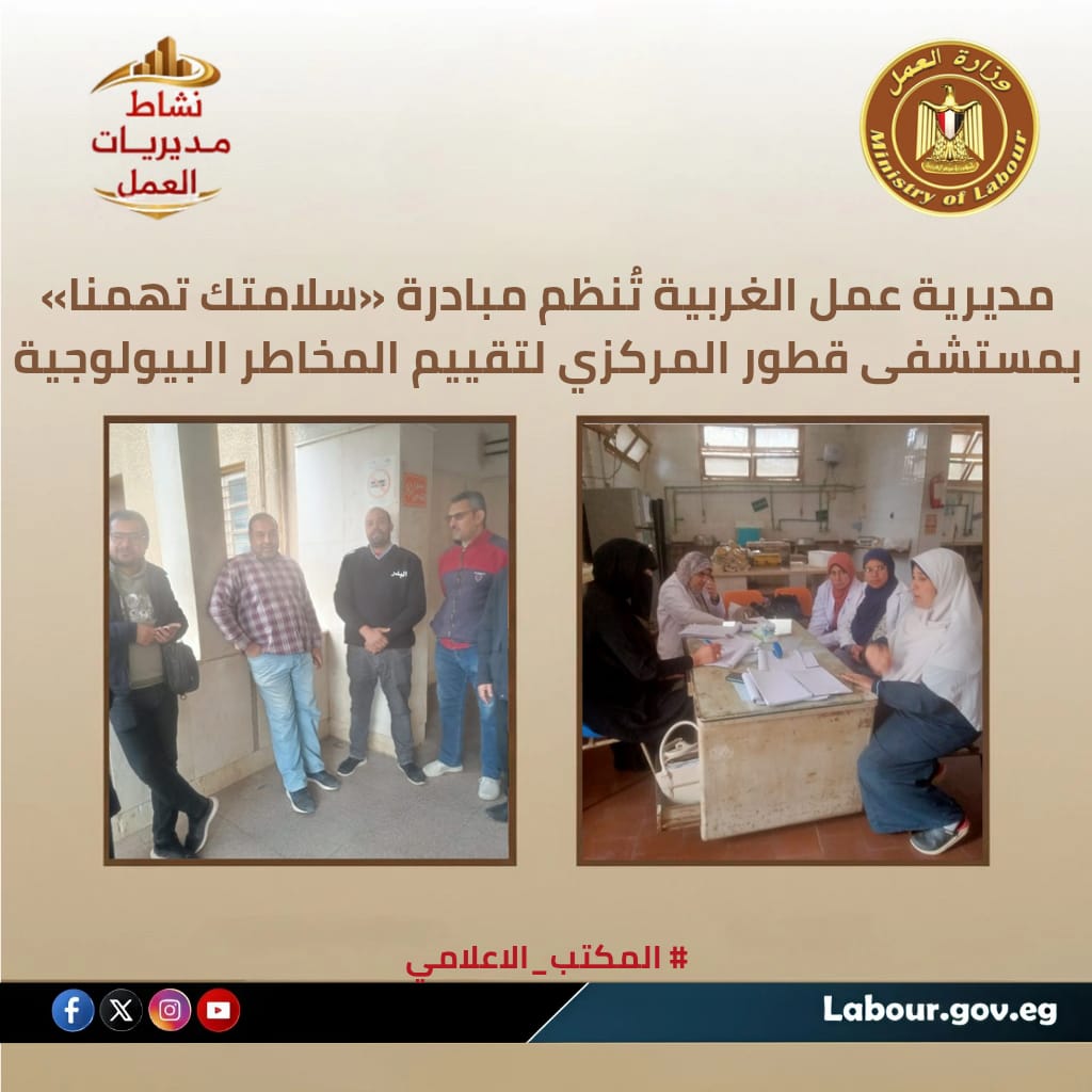 مديرية عمل الغربية تُنظم مبادرة «سلامتك تهمنا» بمستشفى قطور المركزي