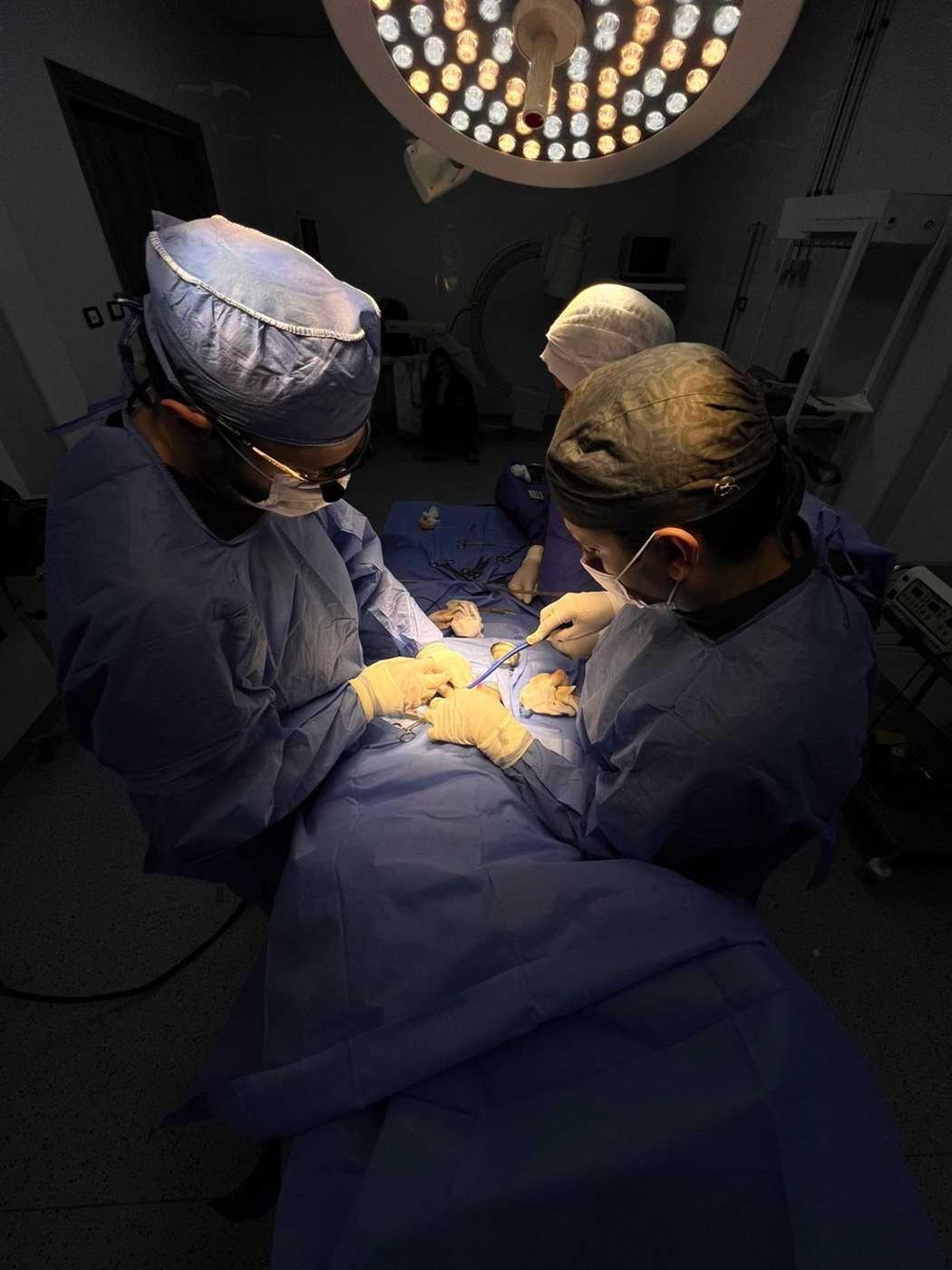 - حيث تم تنفيذ المرحلة الأولى من الإصلاح الجراحي بإجراء تحويل مسار للبراز كولوستومي لضمان استقرار الحالة ومنع حدوث مضاعفات خطيرة