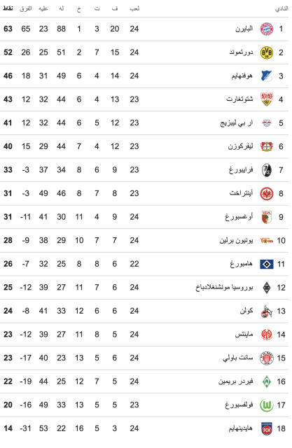 جدول ترتيب الدوري الألماني عقب فوز البايرن..ومواعيد المباريات