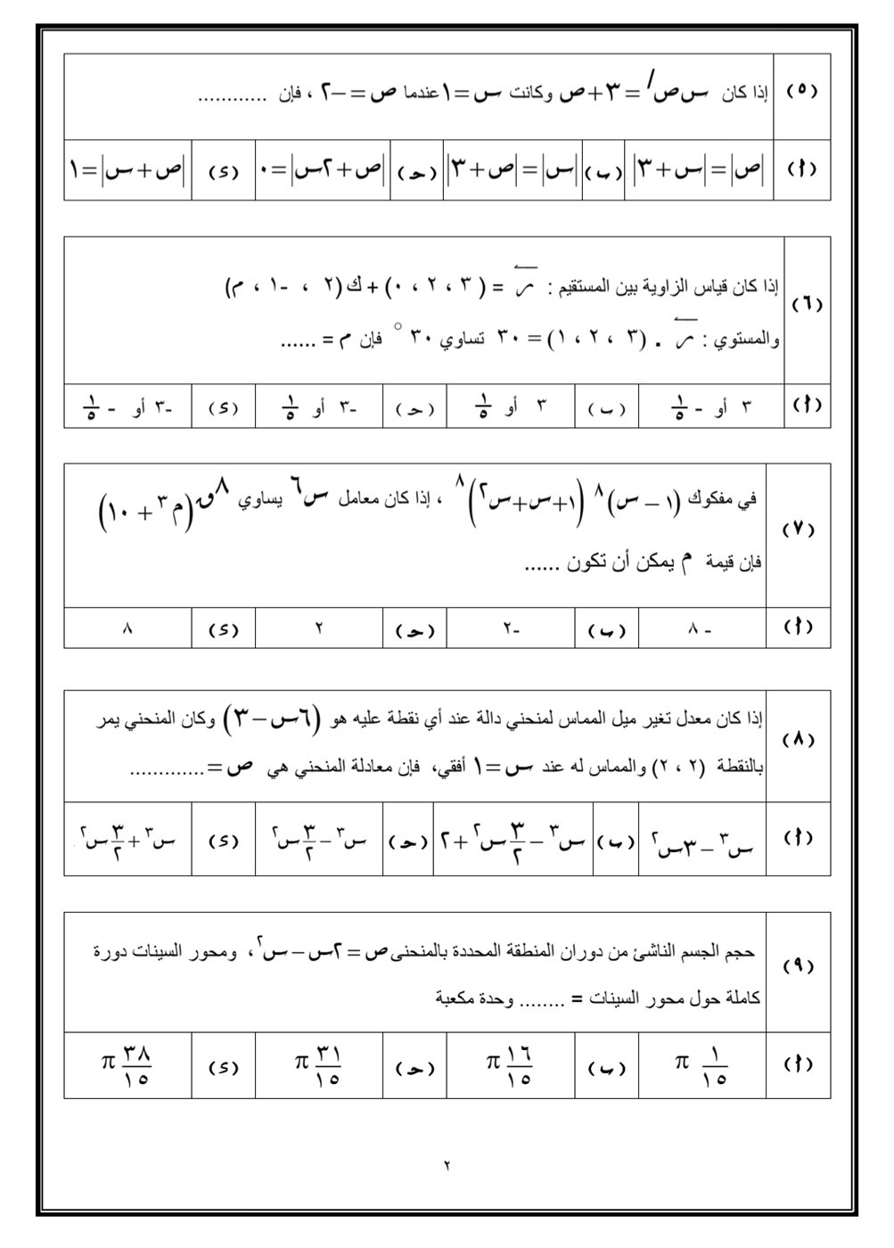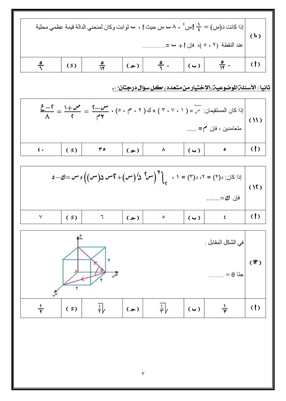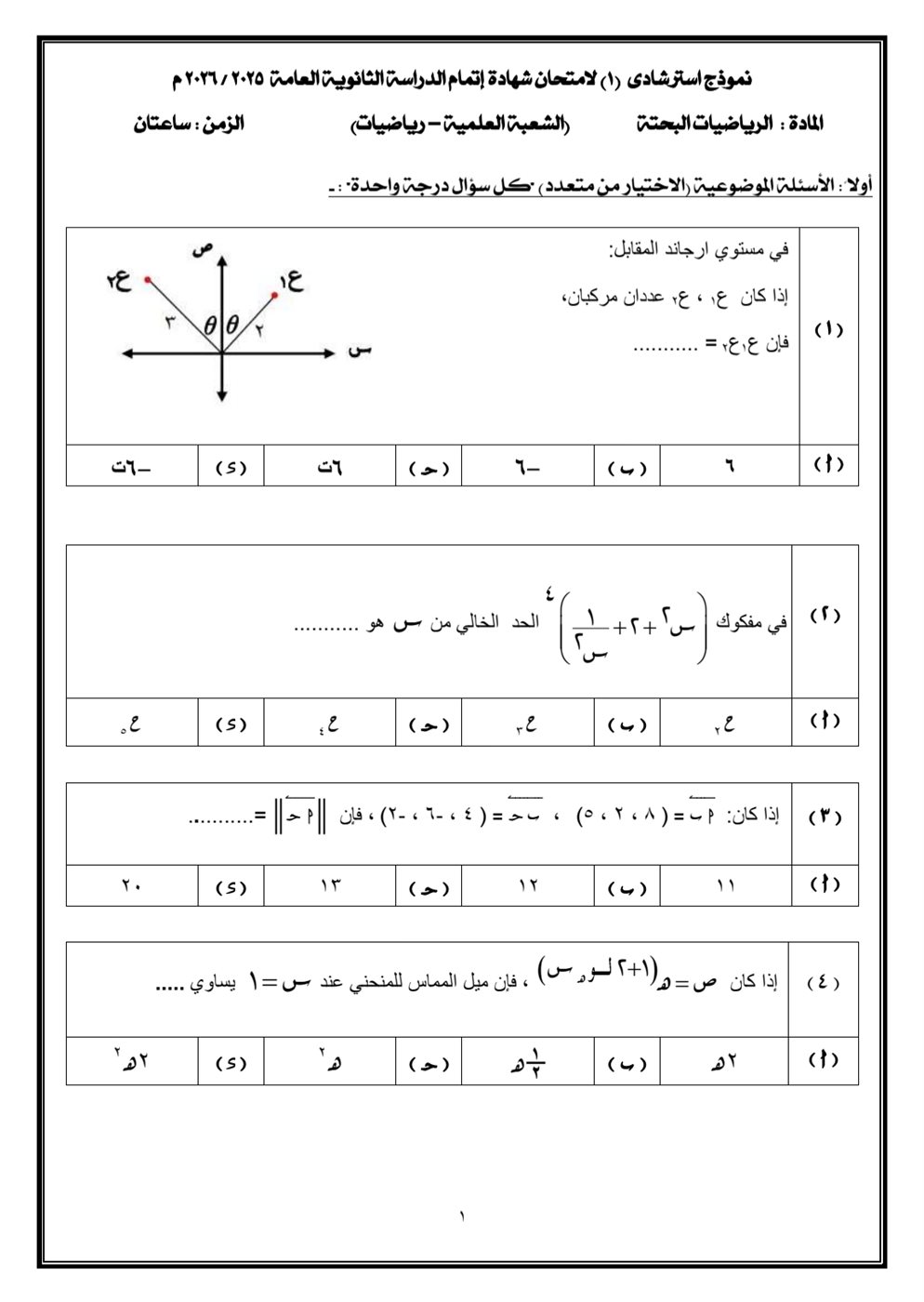 النماذج الاسترشادية 2026.. ننشر امتحان الرياضيات البحتة للثانوية العامة
