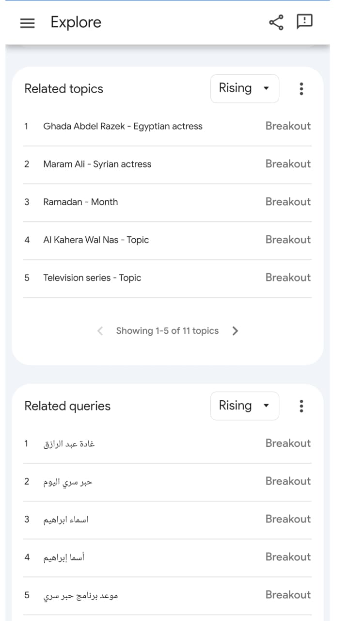 وتصدّرت حلقة غادة عبد الرازق قائمة الأكثر بحثًا، تلتها حلقة النجمة السورية مرام علي، وسط إشادات واسعة بجرأة الطرح وقوة المواجهة.
