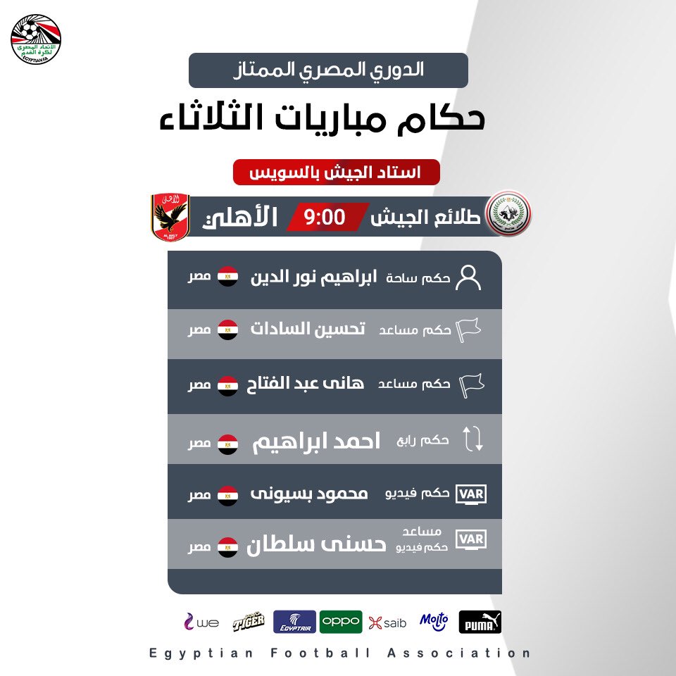 حكام مباراة الأهلي وطلائع الجيش بتاريخ 17 أغسطس 2021