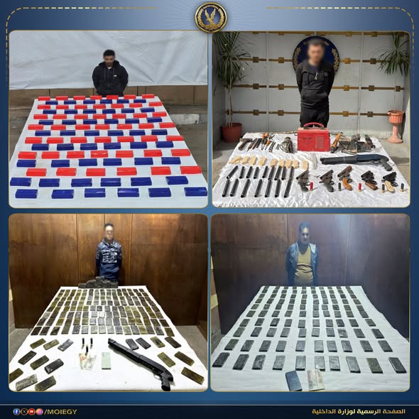 أكدت معلومات وتحريات قطاعى (الأمن العام - مكافحة المخدرات والأسلحة والذخائر غير المرخصة) بالتنسيق مع أجهزة الوزارة المعنية قيام بؤر إجرامية بنطاق عدد من المحافظات تضم (عناصر جنائية شديدة الخطورة) بجلب كميات من المواد المخدرة والأسلحة النارية غير المرخصة تمهيداً للإتجار بها.