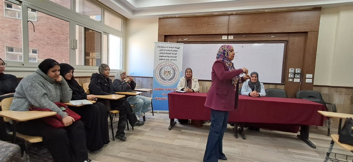 نظمت إدارة إعلام مطروح ندوة تثقيفية موسعة استهدفت طالبات الكليات المختلفة بجامعة مطروح تحت عنوان دور العناية الصحية للفتاة في الارتقاء بالخصائص السكانية حيث ركزت الفعالية على الربط بين جودة حياة الفرد والمؤشرات العامة للدولة.