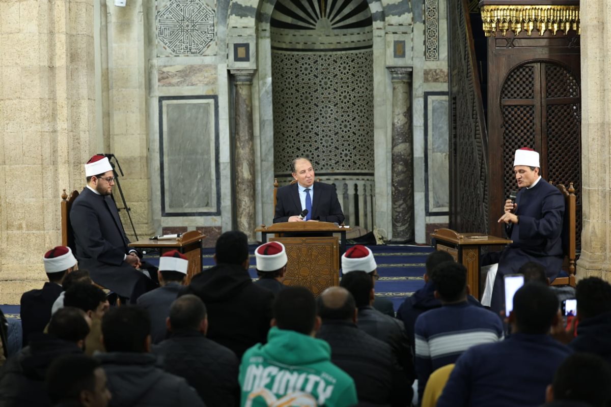 عقد الجامع الأزهر، اليوم الثلاثاء، في الليلة الرابعة عشرة من شهر رمضان المبارك، عقب صلاة التراويح، ملتقى الجامع بعنوان: "معالم الشخصية المسلمة في ظل معطيات عصر وسائل التواصل الاجتماعي"، بمشاركة الدكتور أسامة هاشم الحديدي، مدير عام مركز الأزهر العالمي للفتوى الإلكترونية، والدكتور معاذ شلبي، عضو هيئة التدريس بكلية الدعوة بجامعة الأزهر، وقدم الملتقى سمير شهاب، المذيع بالتليفزيون المصري.