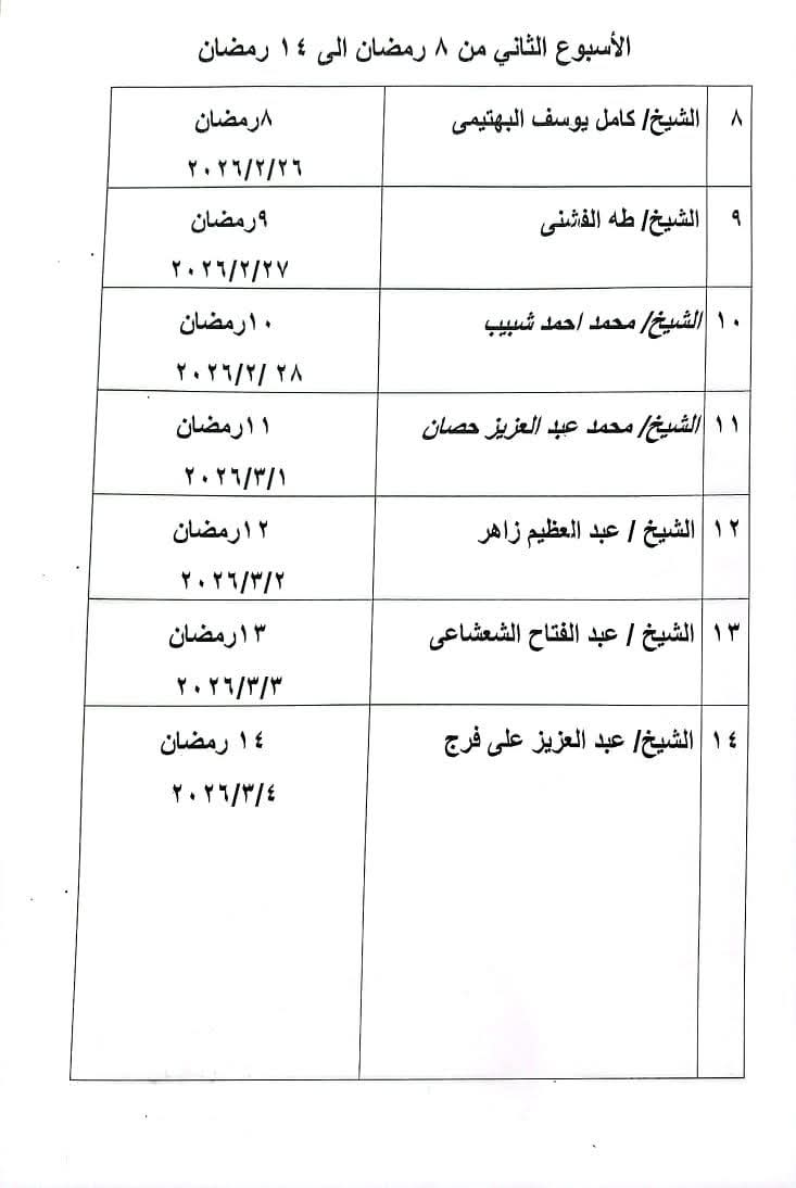 قرآن المغرب..عبر أثير إذاعة القرآن الكريم، يتلو الشيخ عبد العزيز علي فرج قرآن المغرب، اليوم الأربعاء، الموافق الرابع عشر من شهر رمضان المبارك، الموافق 4 من مارس 2026 م، والتلاوة لما يتيسر من سورة البقرة ومدتها 41 دقيقة.