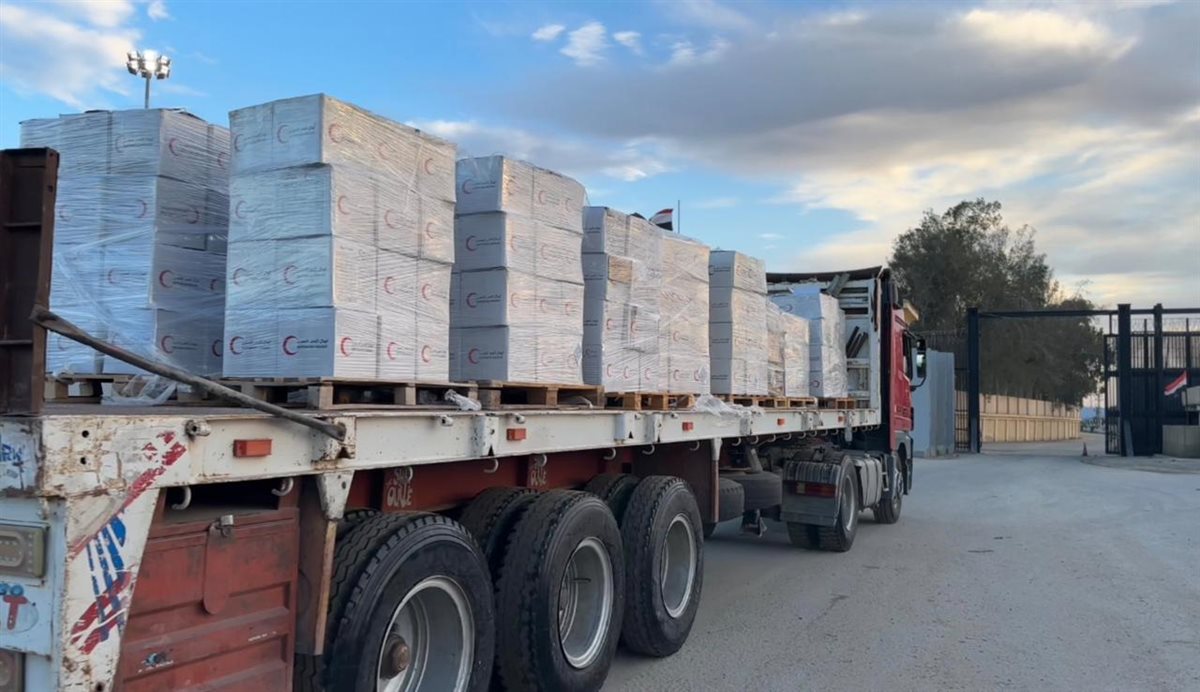 الهلال الأحمر يدفع بأكثر من 2865 طنًا من المساعدات لأهالي غزة