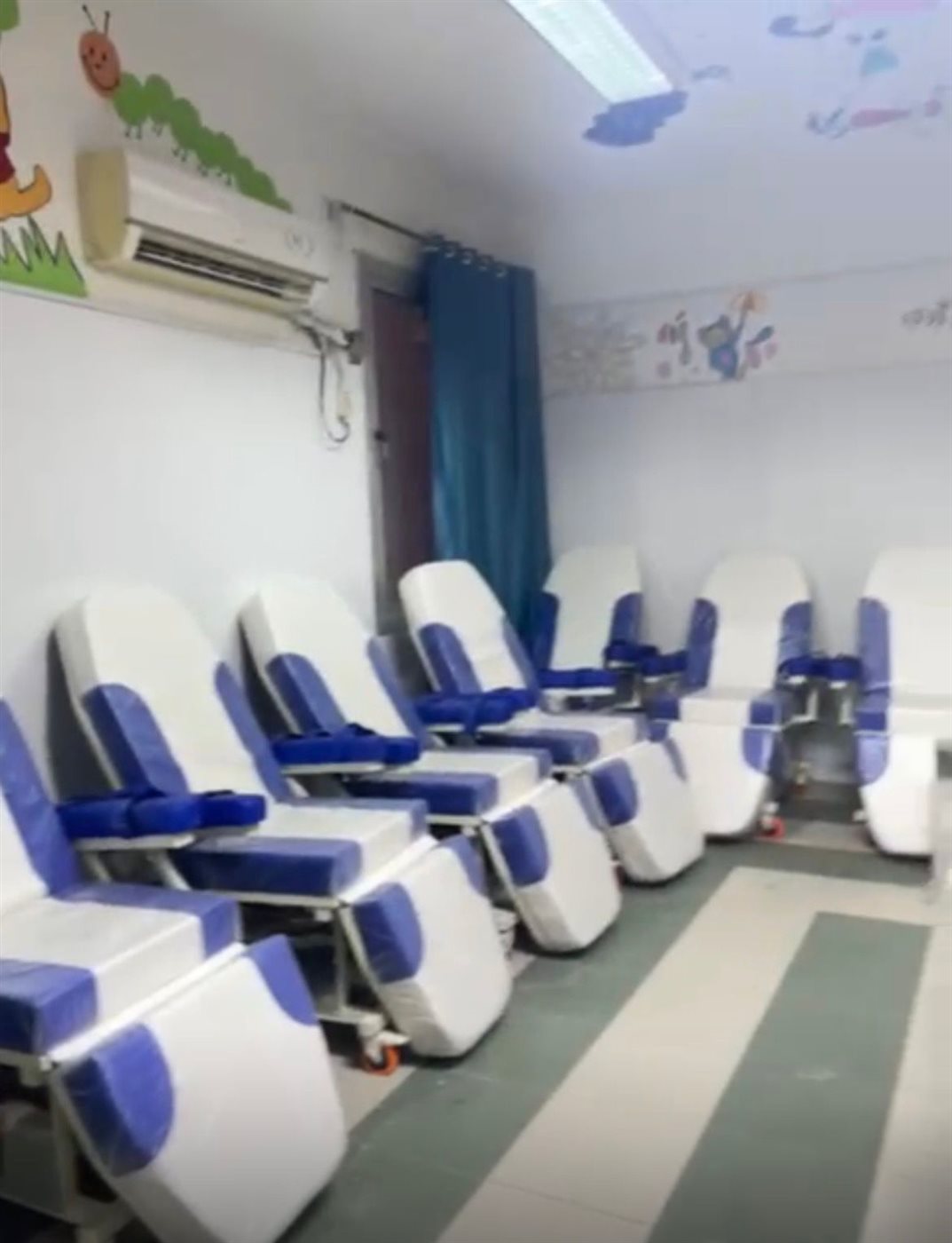 كما ساهم فريق المتطوعين "بنشتي"، المتخصص في تنفيذ الرسومات الفنية على الأسقف والحوائط، في تنفيذ لوحات فنية مميزة داخل الوحدة.