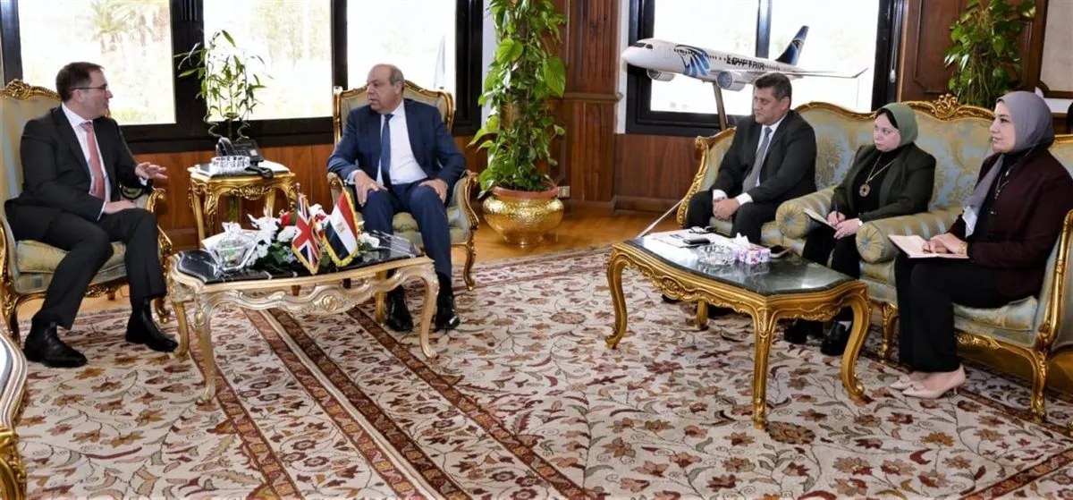 وزير الطيران المدني يبحث مع السفير البريطاني تعزيز التعاون في النقل الجوي وتطوير المطارات
