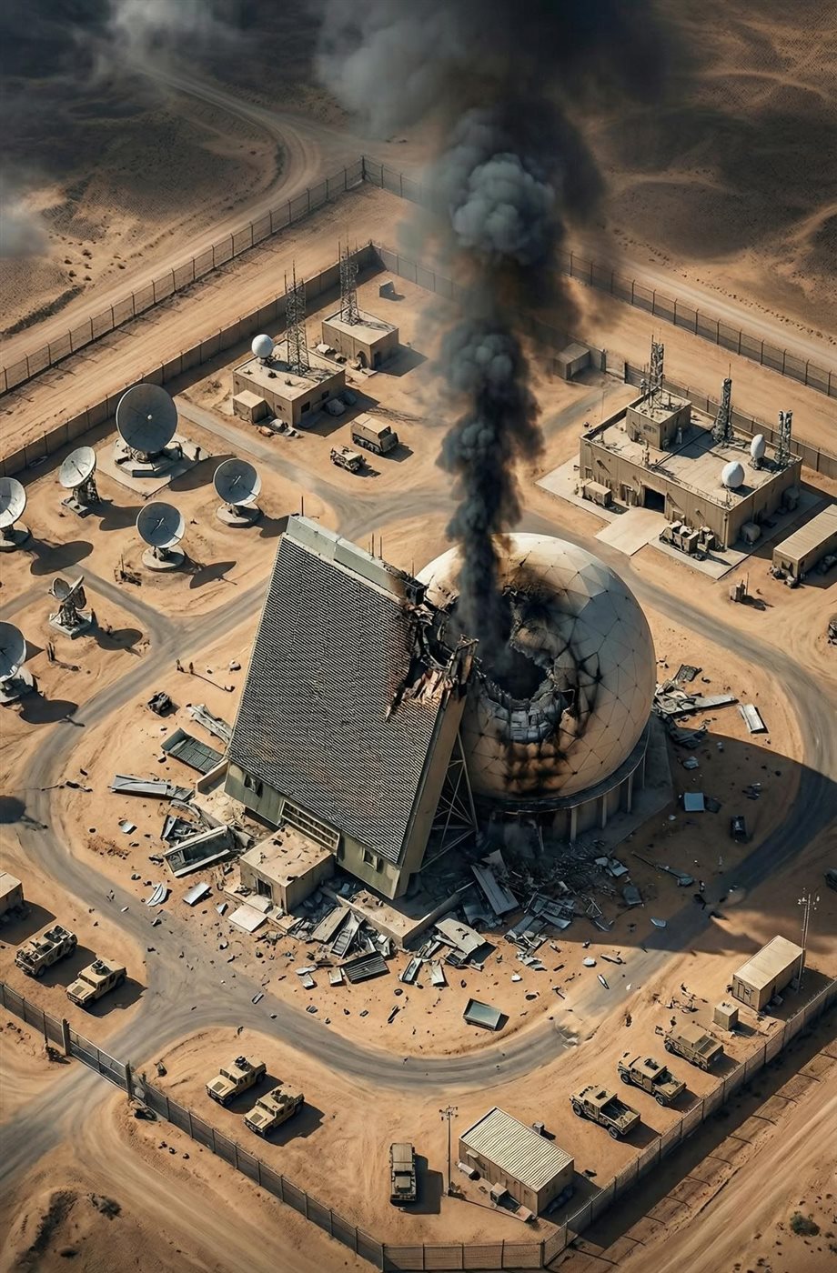أظهرت صور الأقمار الصناعية الملتقطة حديثا دمارا واسعا أصاب وجه الرادار الأمريكي العملاق من طراز "AN/FPS-132 Block 5" المتمركز بالقرب من منطقة الخور شمال قطر.