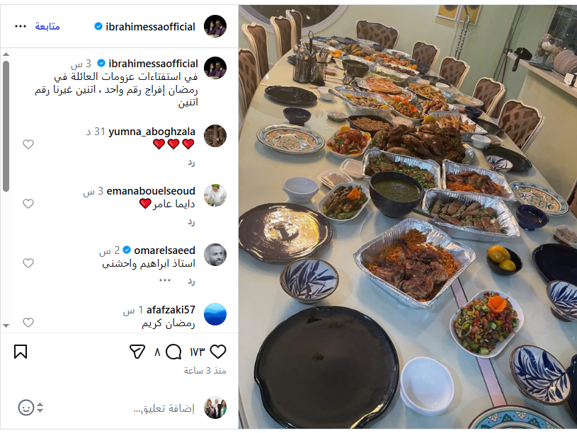 نشر إبراهيم عيسى صورة من إحدى عزومات العائلة خلال شهر رمضان، في إشارة إلى الأجواء الرمضانية المعتادة، وعلق قائلاً: "في استفتاءات عزومات العائلة في رمضان.. إفراج رقم واحد، اتنين غيرنا رقم اتنين"، في تعبير ساخر يشيد خلاله بنجاح المسلسل وحضوره القوي في أحاديث الجمهور خلال الشهر الكريم.