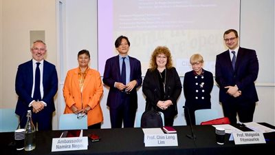 و قدمت محاضرة السفيرة بجامعة دورهام الدكتور دنيس شميدت الأستاذ مساعد في العلاقات الدولية بكلية الحكومة والشؤون الدولية ضمن سلسلة محاضرات بعنوان "السياسة في الممارسة" بجامعة دورهام بإنجلترا ، وقدمت محاضرة السفيرة نجم بكلية لندن للاقتصاد والعلوم السياسية البروفيسورة تيودورا كريستو بجامعة لندن.