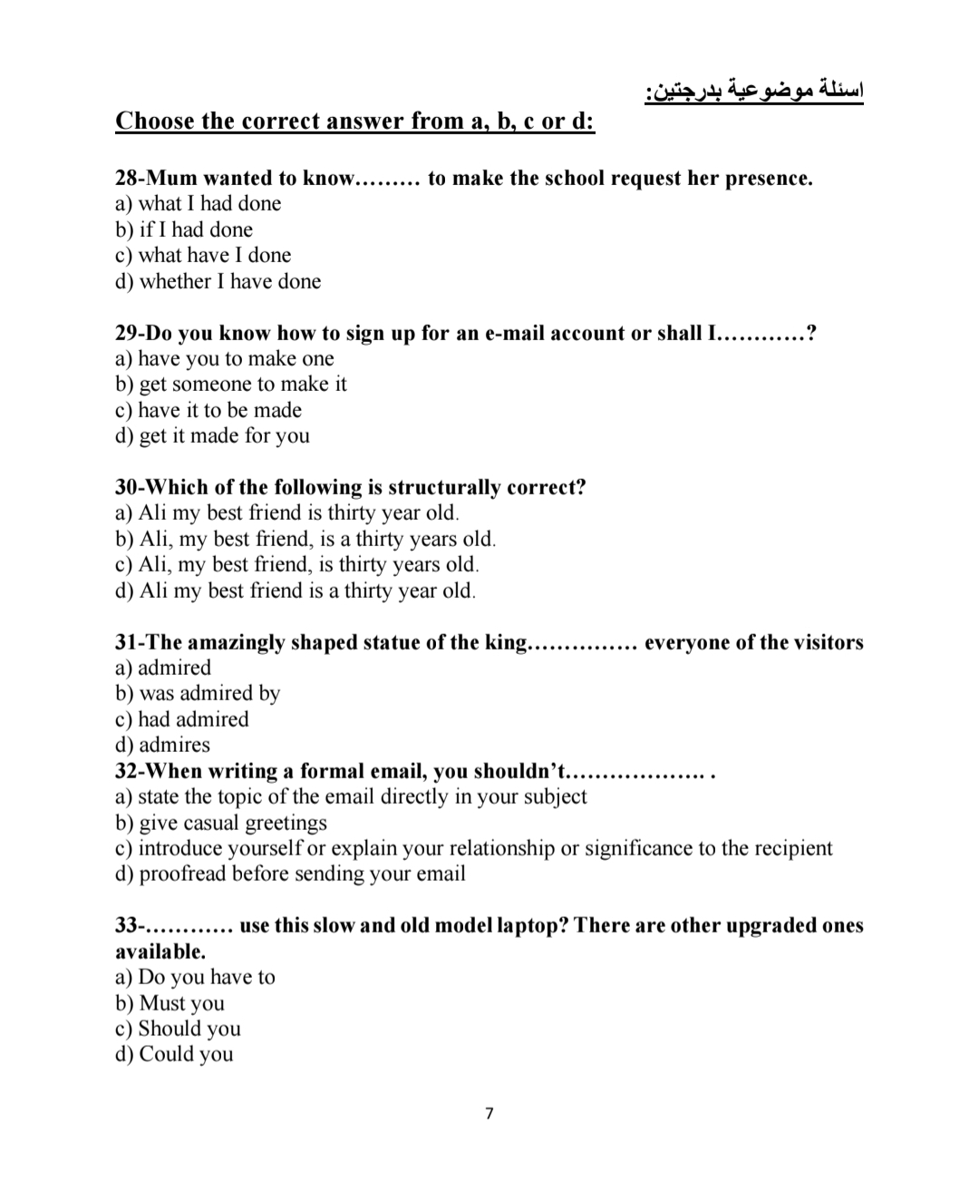 نموذج امتحان اللغة الإنجليزية 2026