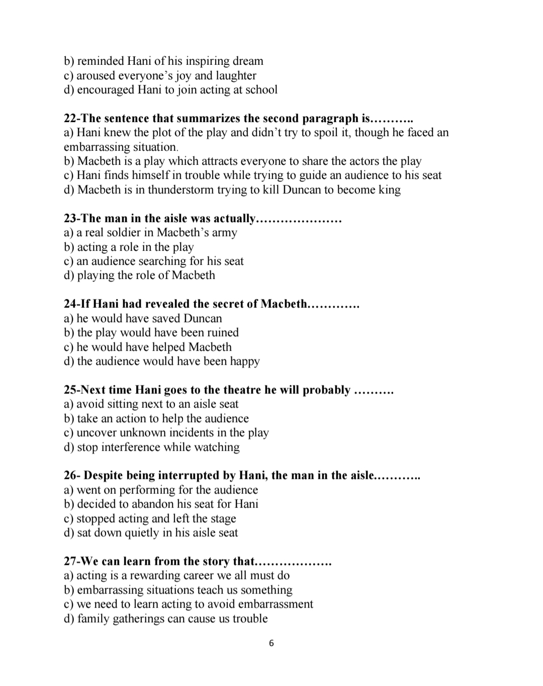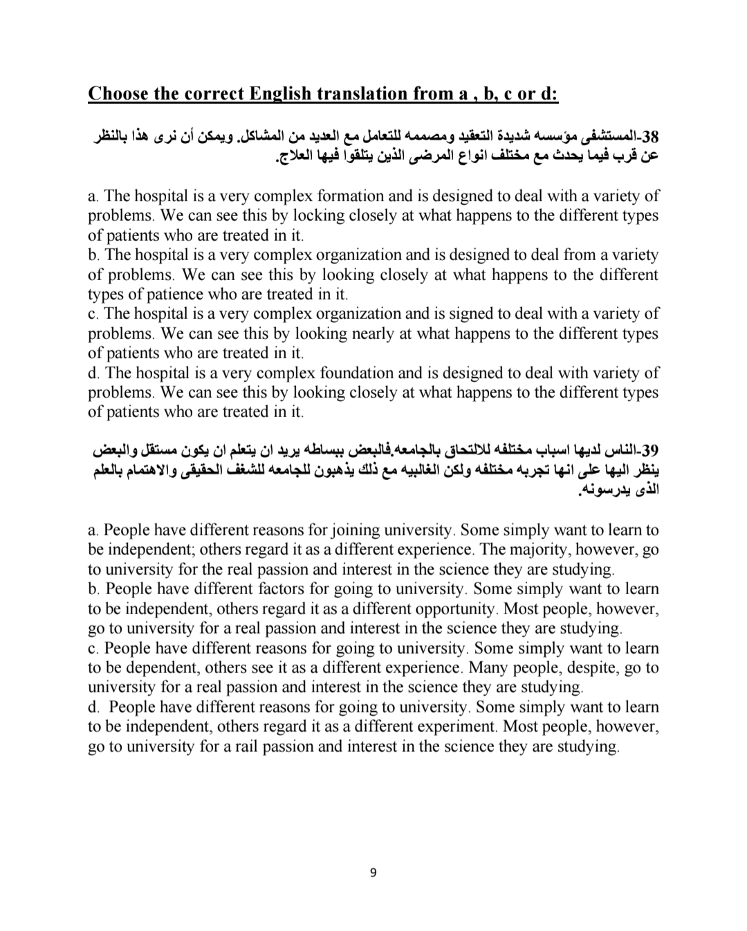 ويخصص للأسئلة المقالية 9 درجات، موزعة على 5 درجات لسؤال مقالي حول كتابة فقرة باللغة الإنجليزية، وسؤالين مقاليين كل منهما بدرجتين.
