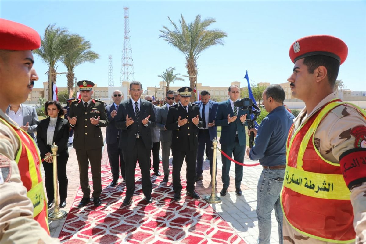 وعزفت الفرقة الموسيقية السلام الوطني ، وسلام الشهيد ، في تقليد عسكري أصيل للوفاء بشهداء مصر ، وما قدموه للوطن من بطولات وتضحيات فداء لعزته ومجده ، كما قرأ جميع الحضور الفاتحة علي أرواح الشهداء .