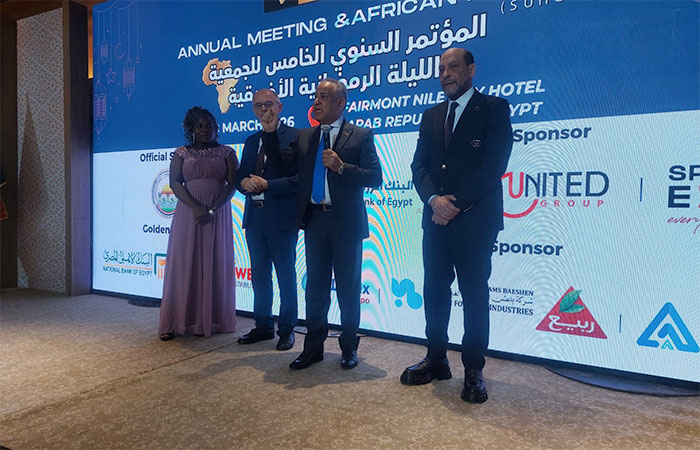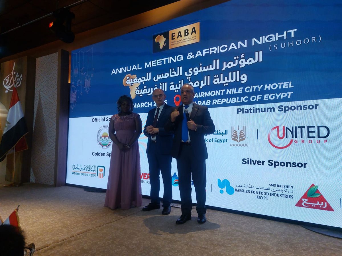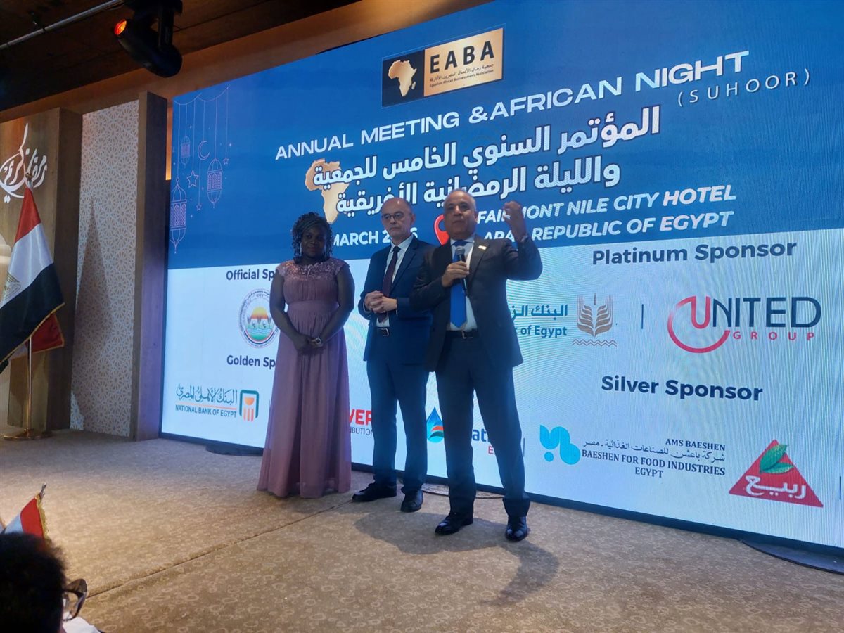 جاء ذلك خلال كلمته بالمؤتمر السنوي الخامس لجمعية رجال الأعمال المصريين الأفارقة برئاسة الدكتور يسري الشرقاوي رئيس مجلس إدارة جمعية رجال الأعمال المصريين الأفارقة، وحضور الدكتور محمدو لبرنج - عميد السلك الدبلوماسي وعميد السفراء الأفارقة بالقاهرة وسفير جمهورية الكاميرون لدى جمهورية مصر العربية، وعدد من سفراء وممثلو الدول والجاليات الافريقية، وبعض أعضاء مجلس النواب، وممثلي الهيئات الاقتصادية والحكومية والبنوك.