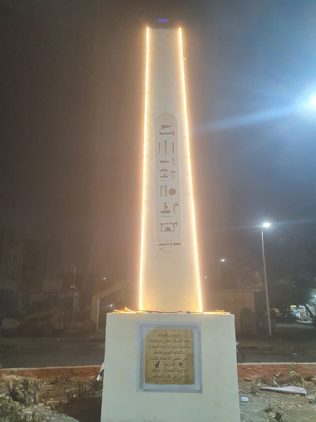 في مشهد يعكس روح الانتماء الحقيقي للوطن والوعي الحضاري لدى شباب دائرة الزاوية الحمراء، اجتمع عدد من أبناء المنطقة حول فكرة تحمل دلالة تاريخية وثقافية عميقة، حيث بادروا بتنفيذ مسلة فرعونية بميدان المثلثة بتقاطع شارع أحمد فاروق مع شارع العاشر، مستلهمين أحد أهم رموز الحضارة المصرية القديمة، ليحولوا الميدان إلى نقطة جمالية تعكس عظمة التاريخ المصري وروح التطوير في الحاضر.
