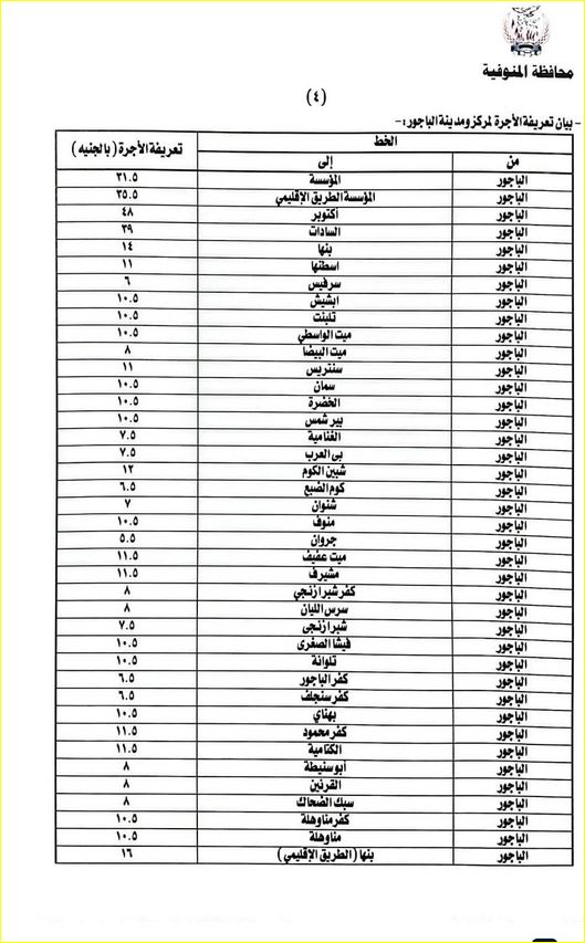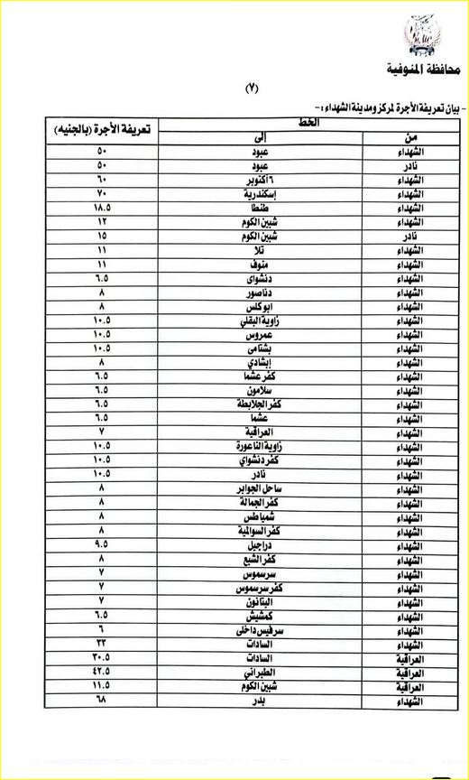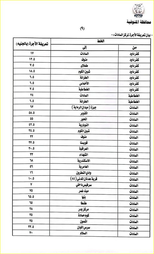 محافظ المنوفية يعتمد تعريفة الركوب الجديدة ويناشد المواطنين بعدم دفع أية زيادة