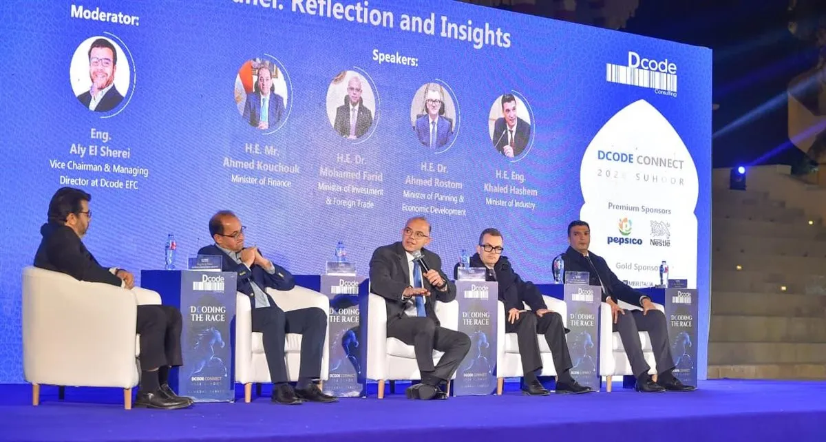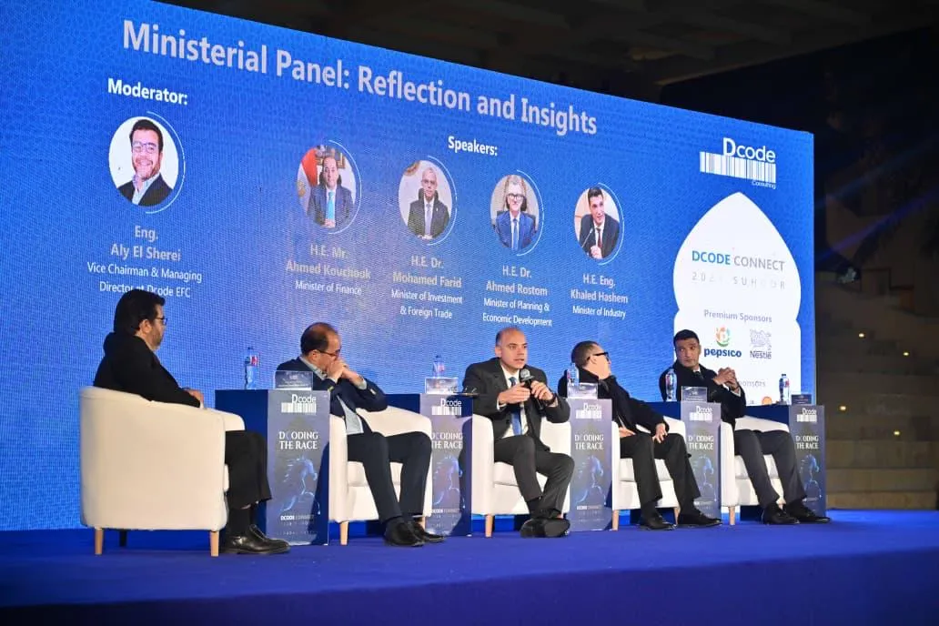 جاء ذلك خلال مُشاركته في جلسة نقاشية وزارية ضمن حفل السحور السنوي لمؤسسة Dcode للاستشارات، بمشاركة السيد/ أحمد كجوك، وزير المالية، والدكتور أحمد رستم، وزير التخطيط والتنمية الاقتصادية، والمهندس خالد هاشم، وزير الصناعة، وأدار الجلسة المهندس علي الشريعي، نائب رئيس مجلس الإدارة والعضو المنتدب لشركة Dcode EFC.