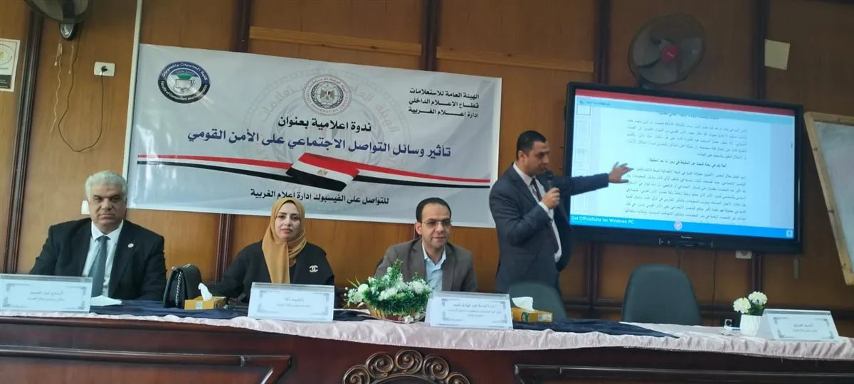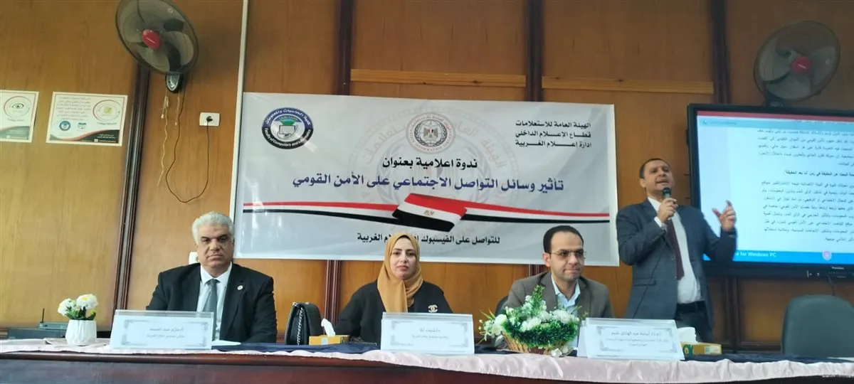 نظم مجمع إعلام الغربية ندوة إعلامية حاشدة تحت عنوان تأثير وسائل التواصل الاجتماعي على الأمن القومي وذلك في إطار الدور الريادي والفعال الذي تضطلع به الهيئة العامة للاستعلامات لرفع مستويات الوعي الوطني وتحصين أفراد المجتمع من المخاطر والأضرار الناجمة عن الاستخدام غير المنضبط لمنصات التقنية الحديثة وجاءت هذه الفعالية تنفيذا لتوجيهات الدكتور أحمد يحيى رئيس قطاع الإعلام الداخلي بالتعاون الوثيق مع كلية الحاسبات والمعلومات بجامعة طنطا بهدف صياغة رؤية وطنية موحدة لمواجهة التحديات الرقمية المعاصرة التي تفرضها العولمة التكنولوجية على الساحة المصرية