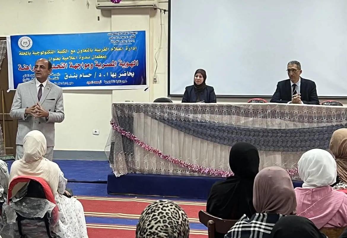 شهدت قاعة المؤتمرات الكبرى داخل الكلية التكنولوجية بالمحلة الكبرى فعاليات الندوة التوعوية الموسعة التي استهدفت رفع الحس الوطني لدى الشباب وتناول ملفات الانتماء والبناء المجتمعي في ظل الظروف والمتغيرات الحالية التي تمر بها المنطقة