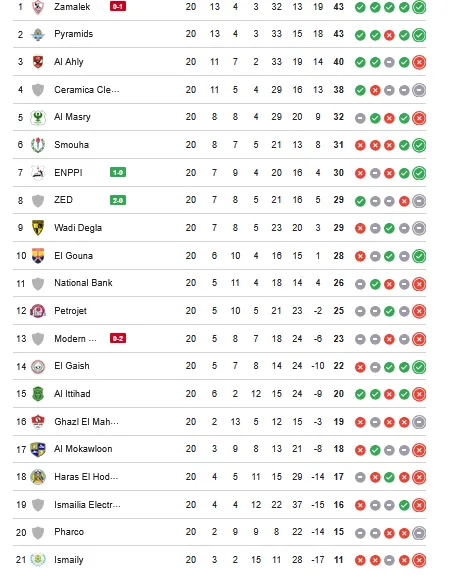 21- الإسماعيلي - 11 نقطة (20 مباراة)