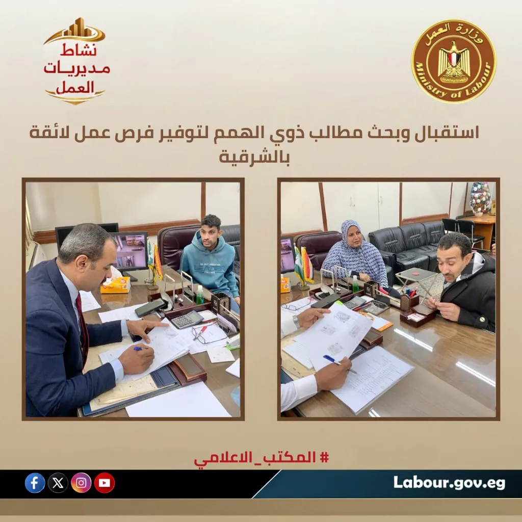استقبال وبحث مطالب ذوي الهمم لتوفير فرص عمل لائقة بالشرقية