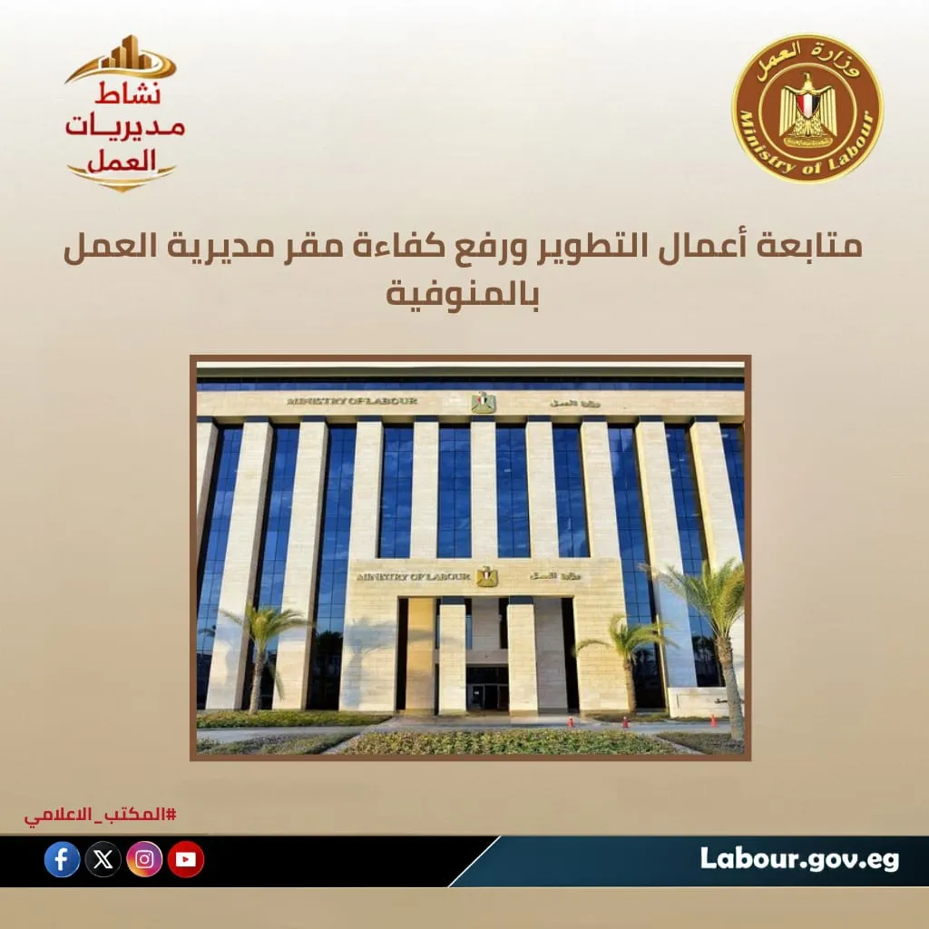 متابعة أعمال التطوير ورفع كفاءة مقر مديرية العمل بالمنوفية