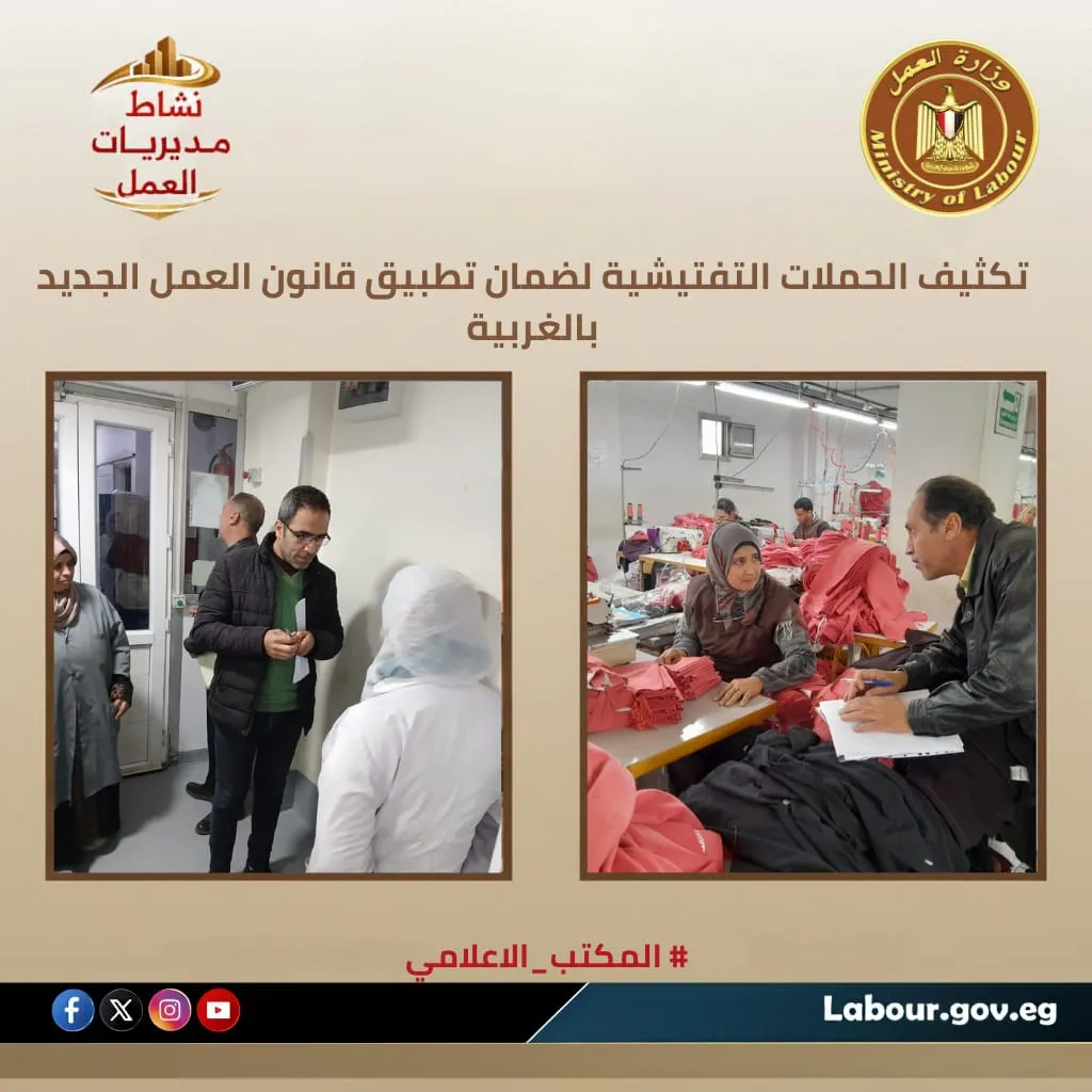 تكثيف الحملات التفتيشية لضمان تطبيق قانون العمل الجديد بالغربية