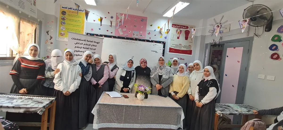 نظم مجمع إعلام مطروح التابع لقطاع الإعلام الداخلي ندوة توعوية كبرى استهدفت طالبات مدرسة التمريض الثانوية بنات لترسيخ قيم الولاء والانتماء تحت عنوان نضال المرأة المصرية وحماية الهوية الوطنية نماذج مشرفة وذلك تزامنا مع احتفالات شهر مارس الذي يضم يوم المرأة العالمي ويوم المرأة المصرية وعيد الأسرة بما يعزز من قيمة الوعي المجتمعي داخل مجمع إعلام مطروح