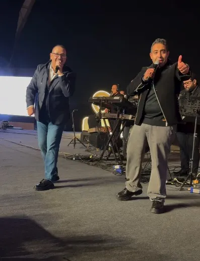 هشام عباس يحتفل بعيد ميلاد محمد عدوية على المسرح في سهرة رمضانية (صور)