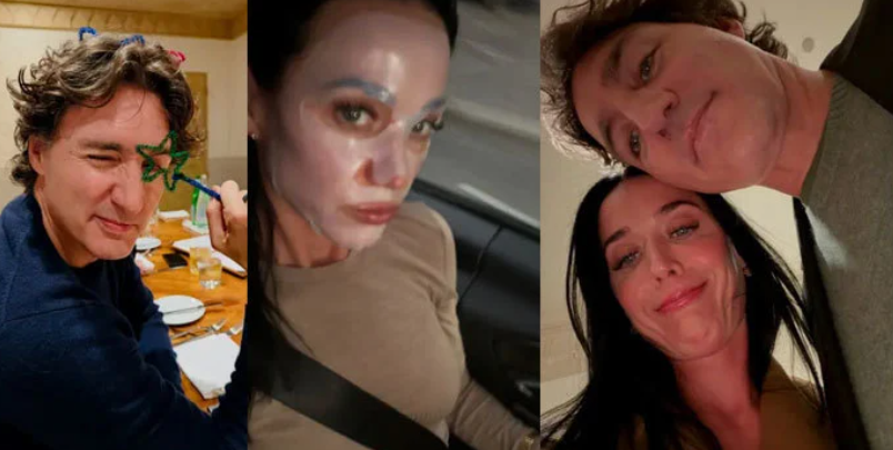 وثقت صور أخرى مشاهد طريفة من الروتين اليومي إذ ظهر ترودو وهو يجلس إلى طاولة وينظر عبر عصا مزينة بنجمة لامعة في لقطة حملت طابع الدعابة.
