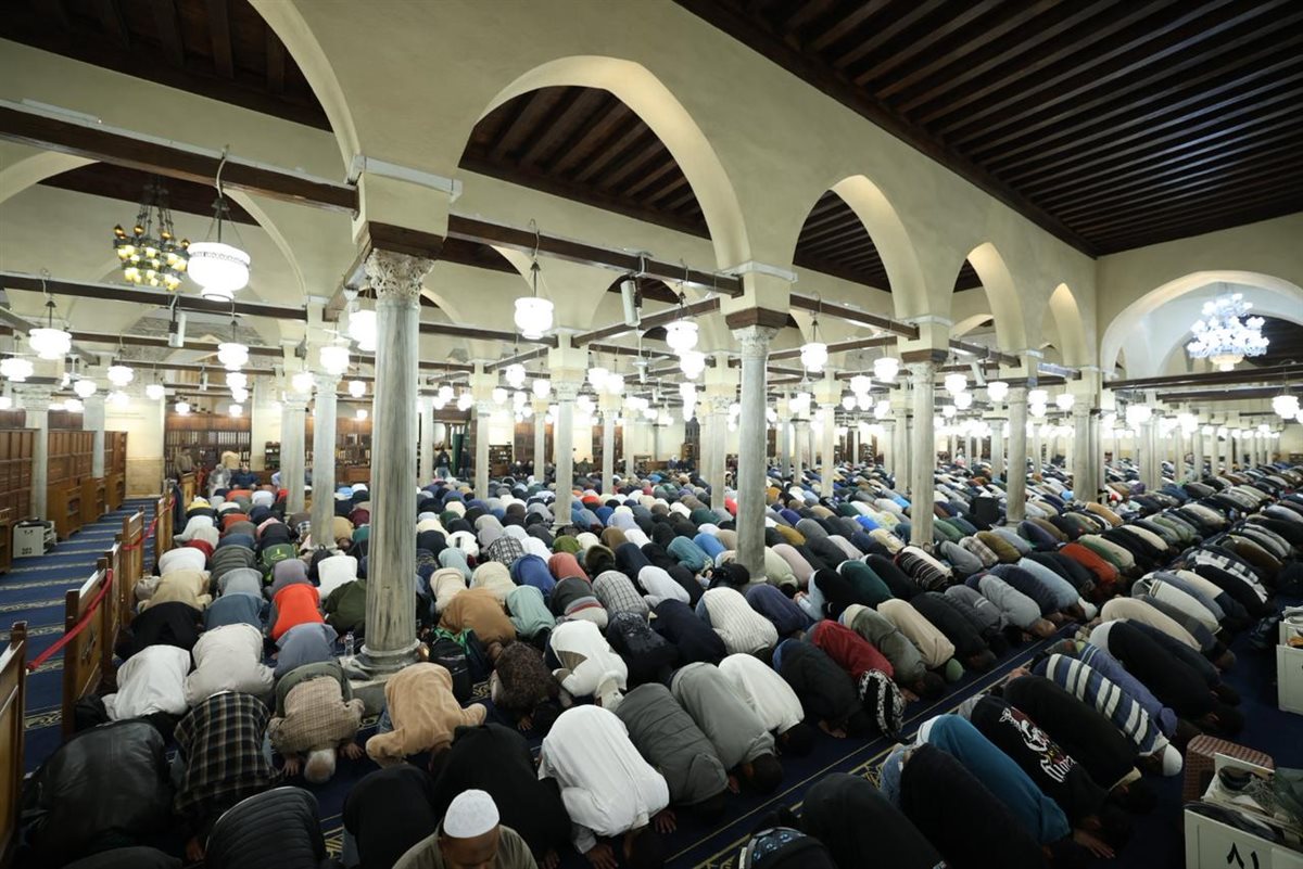 شهد الجامع الأزهر في الليلة الرابعة والعشرين من شهر رمضان المبارك توافدًا كبيرًا من جموع المصلين الذين ملأوا أروقته التاريخية وساحاته العامرة منذ وقت مبكر، في أجواء إيمانية مهيبة تعكس مكانة الجامع الأزهر كقبلةٍ للعلم والعبادة ووجهةٍ للمسلمين من مختلف دول العالم والمحافظات خلال شهر رمضان المبارك، حيث حرص المصلون على اغتنام هذه الليالي المباركة من العشر الأواخر، رجاءً لنفحات الرحمة والمغفرة والعتق من النيران.