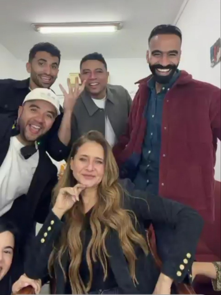 وظهر فريق العمل في أجواء من البهجة خلال الاحتفال، حيث شاركها الاحتفال كل من محمود الليثي وأحمد ماجد وشهد الشاطر وآية سليم، وذلك على أنغام أغنية «إيه الأساتوك ده» للمطرب الشعبي حمدي بتشان.