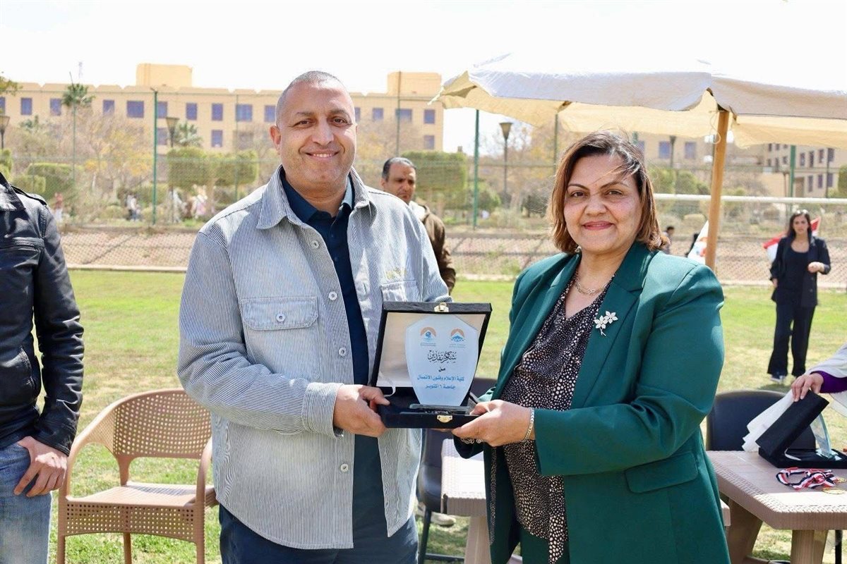 وتم تكريم ضيوف الدورة الرمضانية من خبراء الإعلام الرياضى بإهدائهم درع الكلية .