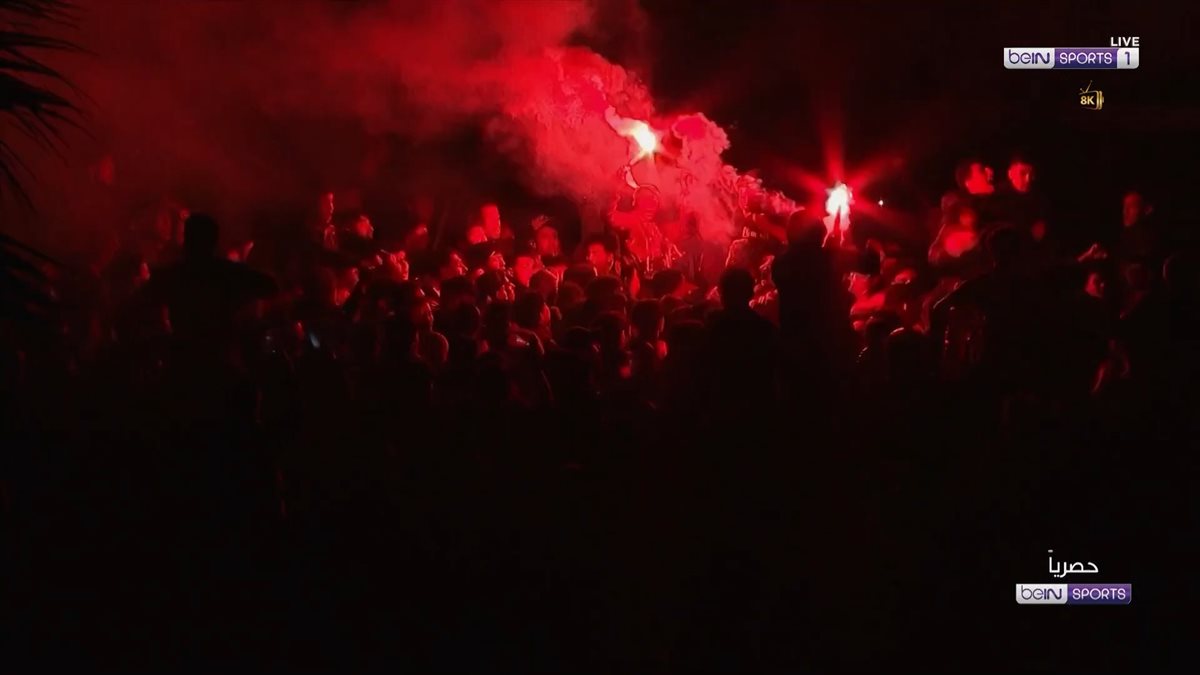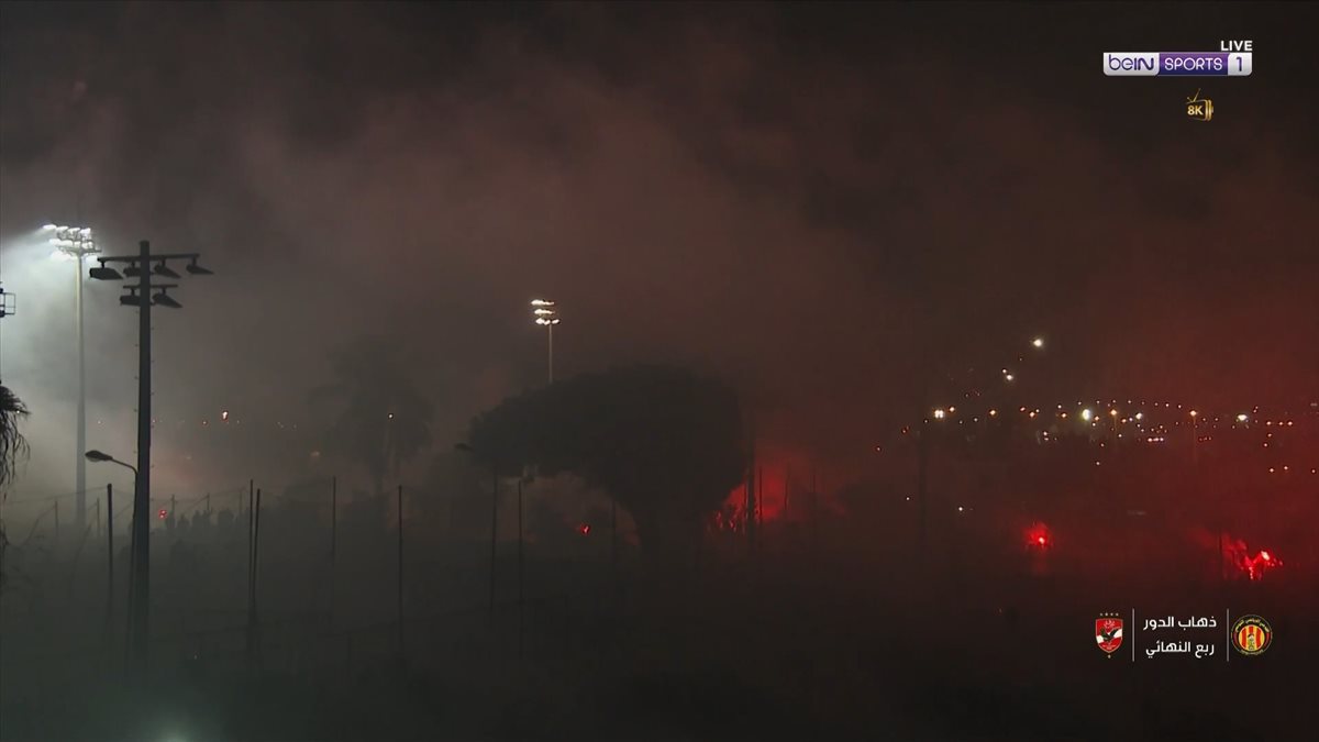 وأشعلت جماهير الترجي التونسي، مدرجات ملعب رادس بالشماريخ أثناء عمليات إحماء لاعبي النادي الأهلي، قبل المواجهة التي تجمعهما في ذهاب ربع نهائي دوري أبطال أفريقيا.