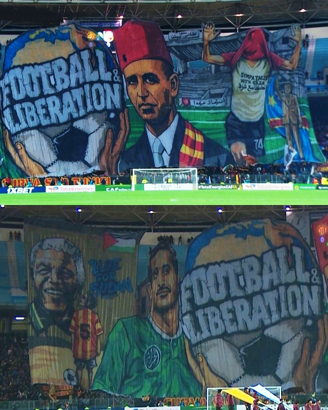 وشهد التيفو تواجد النجم المصري محمد أبو تريكة، في صورته الشهيرة والتي أعلن فيها تعاطفه مع غزة بوقت سابق، كما شهد التيفو تواجد أسطورة جنوب أفريقيا نيسلون مانديلا.